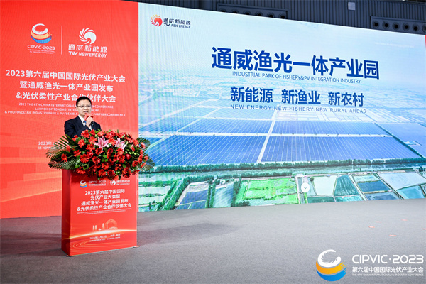 11月15日,通威漁光一體產業園發布暨光伏柔性產業合作伙伴大會在成都隆重舉行。有關領導、行業專家、合作伙伴齊聚2023第六屆中國國際光伏產業大會現場,深入探討“光伏+”模式創新,推進產業合作,為我國“雙碳”目標實現和鄉村振興貢獻更多光伏力量。