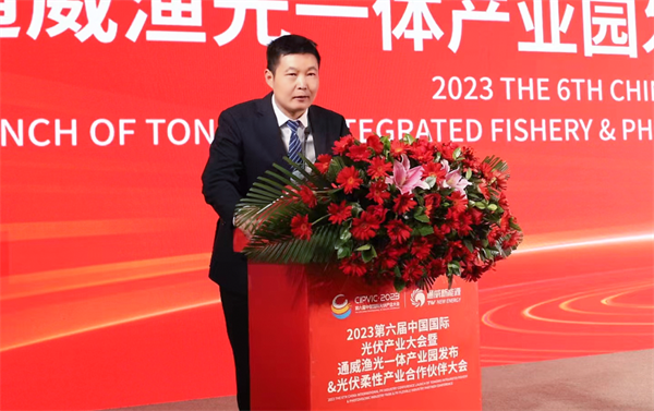 通威集團副總裁胡榮柱致歡迎辭表示,當前,碳中和熱潮正起,鄉村振興戰略全面推進。通威堅持將企業發展與國家政策同頻共振,把全球首創的“漁光一體”模式提檔升級為定位更高、價值更高的“漁光一體”產業園,推動實現一二三產融合發展,做好做足“漁光”產業文章,解決可持續發展問題。“漁光一體”從源頭上、過程中,解決水產養殖的安全和可控,助推水產行業健康轉型,既提供優質、安全、綠色的水產品,又還清水綠岸、魚翔淺底的秀麗景色。通威將繼續與大家攜手并進,深化技術交流,創新合作模式,拓展合作空間,做優做強“光伏+”應用市場,有效助力我國實現“雙碳”目標和光伏產業高質量發展。