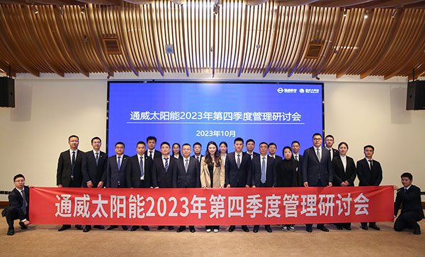 10月13日,通威太陽能成功舉行2023年四季度管理研討會。通威股份董事長、CEO劉舒琪出席會議并講話,通威太陽能總經理周華、通威股份光伏商務部組件營銷副總經理薛青松、通威股份光伏技術部光伏研究院院長蔣方丹及通威太陽能高管團隊出席會議。
