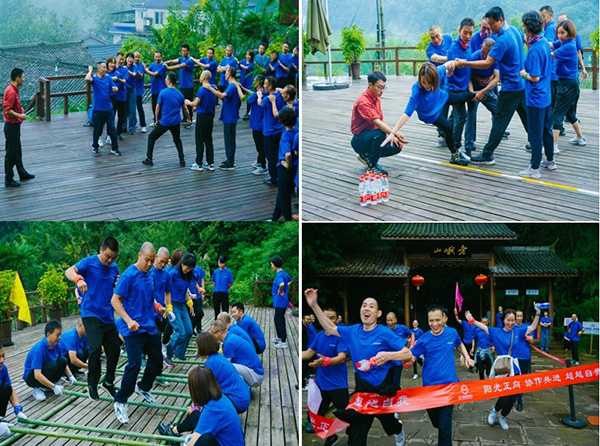 活動在全體人員極力推薦的”拳擊“高手與拓展老師的擂臺比賽中拉開序幕。隨后按分組的方式通過群龍取水、團隊竹竿舞、時間隧道,以組間PK的方式要求各組按規則完成各項任務,活動中員工遵守規則、高效協作、熱情高漲,在既定的時間順利完成了各項要求任務。