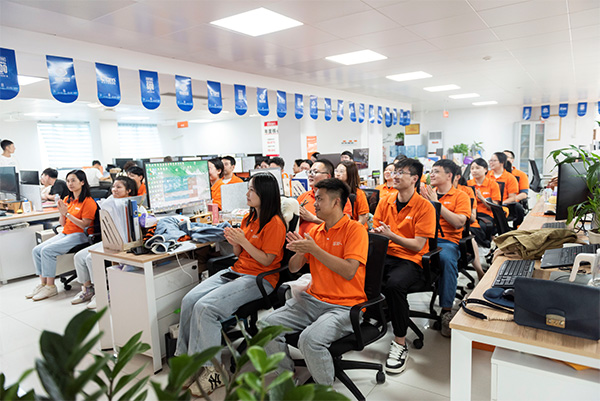 臺上競賽精彩,臺下啦啦隊也自成一道“風(fēng)景線”,各公司方陣都鉚足了勁為自家選手打Call,現(xiàn)場歡呼聲、吶喊聲此起彼伏,加油聲、喝彩聲一浪高過一浪。