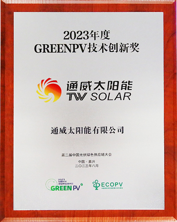 通威太陽能榮獲“GREENPV技術(shù)創(chuàng)新獎(jiǎng)(光伏電池類)”