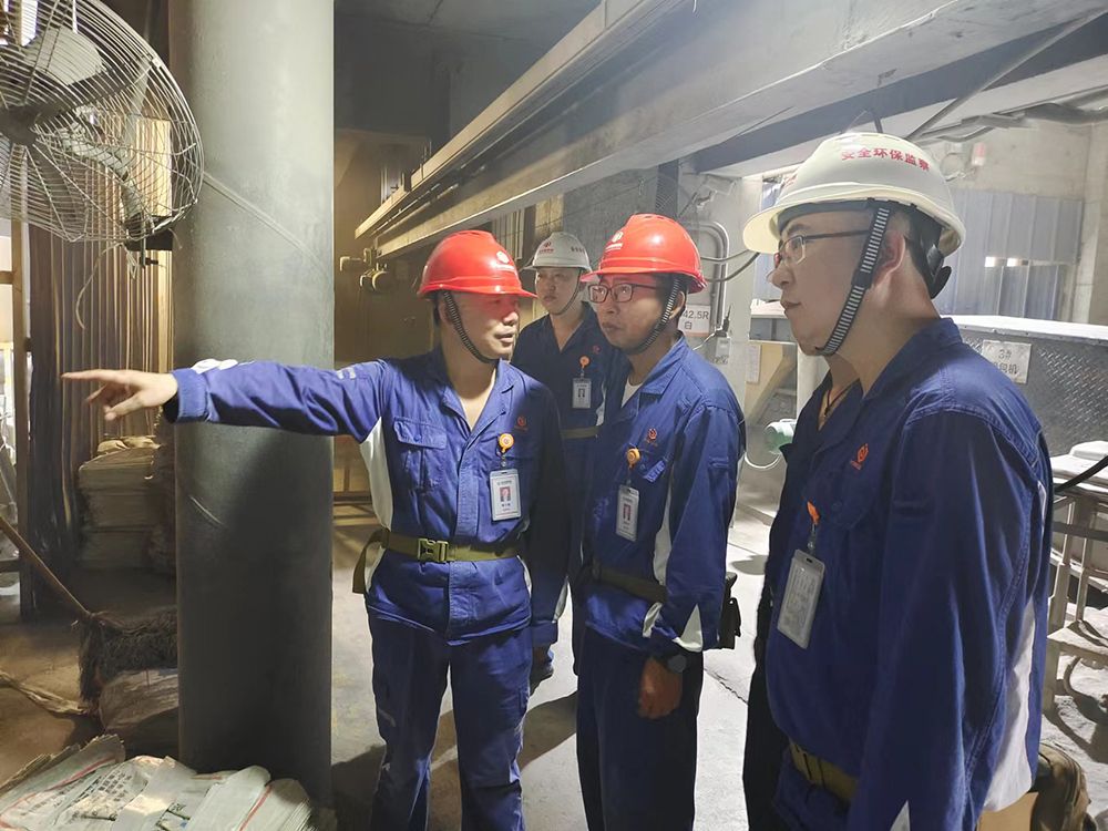 廖總一行先后前往成品配料庫、包裝車間、預拌車間等區域,重點檢查高溫區域防火情況、人員防暑情況,對檢查出的偏差項按四定原則進行整改。