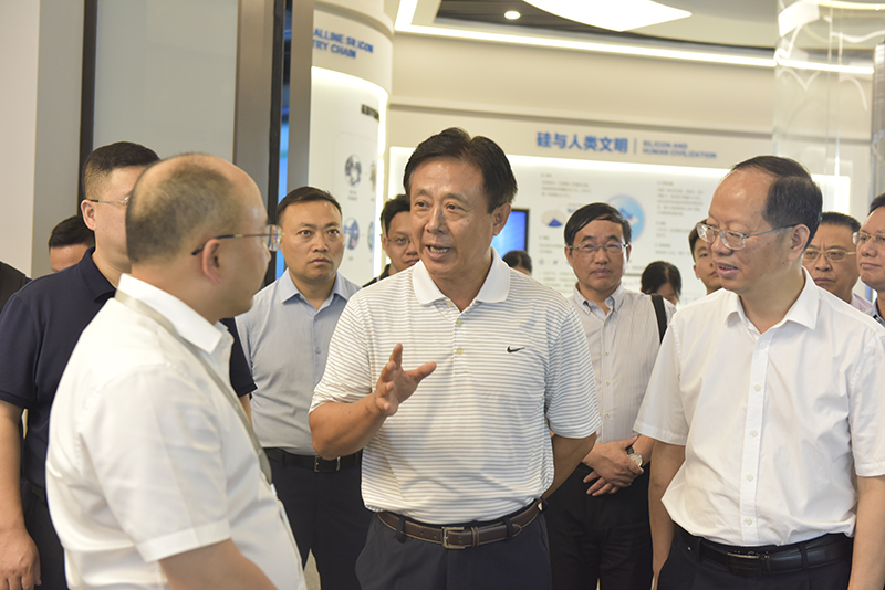在數字體驗中心,王小康會長一行了解了永祥股份的產業規劃、產能規模、發展歷程等情況,對永祥堅持自主研發、科技強企、綠色發展、安全發展的理念給予高度肯定。代總對王小康會長一行的蒞臨指導表示歡迎,并表示,永祥會堅定自主創新的發展之路,堅持“可靠性是高純晶硅行業的生命線”的理念,堅持綠色高質量發展,通過節能減排理念、技術創新、安全管理,積極推行循環經濟鏈,推進資源的高效循環利用,不斷降低能耗,提升公司市場競爭力,朝著打造高純晶硅世界級龍頭企業和世界級清潔能源公司的宏偉目標砥礪奮進。