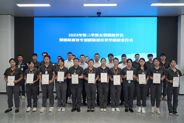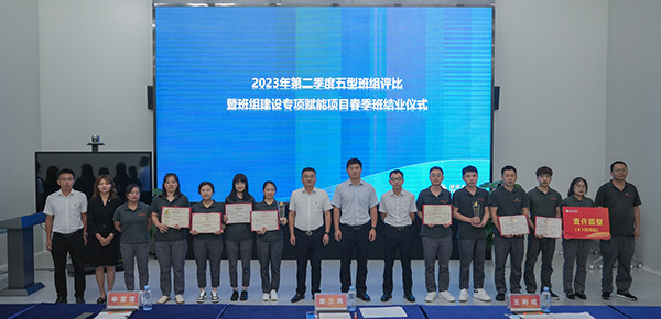 活動現場,各廠部依據五型班組“技能型、效益型、管理型、創新型、和諧型”五個維度進行第二季度五型班組評比。隨后,各基地領導高度贊賞了班組建設在2023年取得的優異成果,同時對獲獎個人及班組表達了祝賀,并鼓勵學員進一步加強自身實力,將學到的理論知識和管理經驗積極運用到班組日常管理中,為建設高質量的五型班組添磚加瓦。