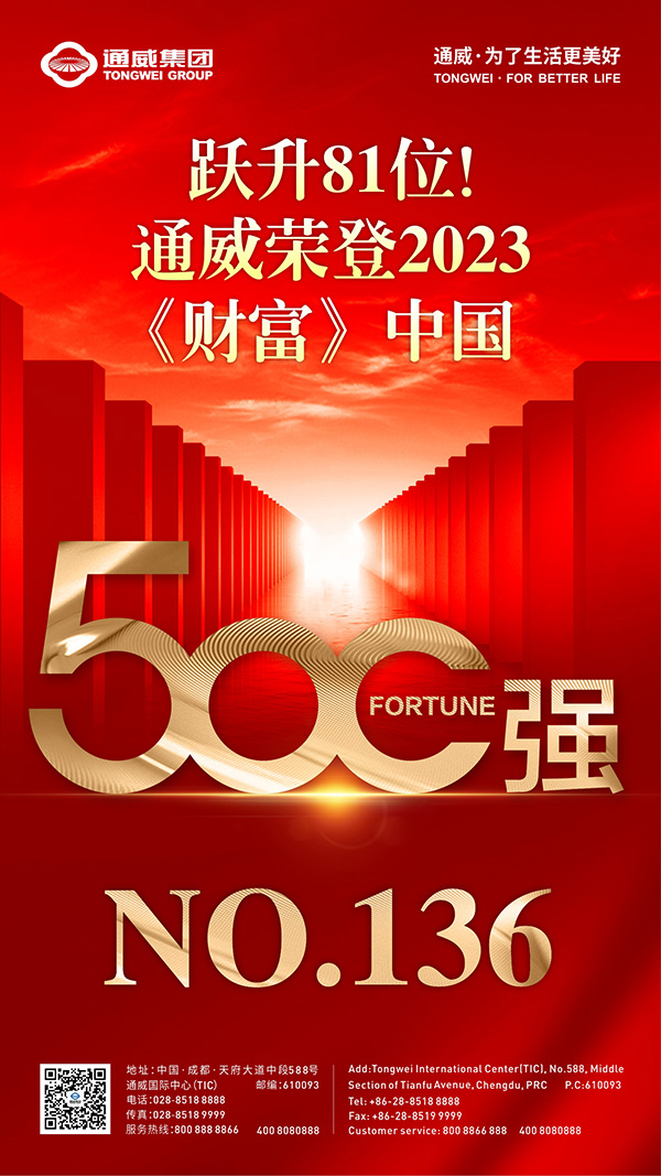 7月25日,財富Plus APP發(fā)布了2023年《財富》中國500強排行榜。憑借良好的營收及利潤表現(xiàn),通威榮列榜單第136位,較去年躍升81位。