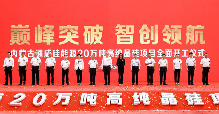 7月20日,內(nèi)蒙古通威硅能源20萬(wàn)噸高純晶硅項(xiàng)目順利開(kāi)工,包頭市委副書(shū)記、市長(zhǎng)張銳,包頭市政府秘書(shū)長(zhǎng)汪占元,包頭市昆都侖區(qū)區(qū)委書(shū)記金永麗,包頭市昆都侖區(qū)區(qū)委常委、常務(wù)副區(qū)長(zhǎng)李忠,通威股份董事長(zhǎng)、CEO劉舒琪,通威股份副總裁、永祥股份總經(jīng)理李斌,通威硅能源指揮長(zhǎng)游書(shū)華,中化二建董事長(zhǎng)賈白冰,中化六建董事長(zhǎng)胡二甫,十一化建董事長(zhǎng)李光明,華陸科技副總經(jīng)理袁娜,江蘇雙良總裁馬培林,江蘇中圣高級(jí)副總裁袁自偉,無(wú)錫化工裝備董事長(zhǎng)曹洪海,東方瑞吉總經(jīng)理程佳彪等見(jiàn)證開(kāi)工儀式。
