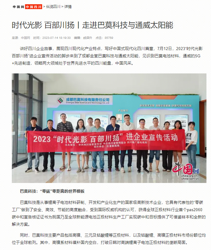 通威太陽能金堂基地是成都輻射中國西部地區和面向國際市場的光伏產品出口的重要生產基地。對于此次入選“時代光影 百部川揚”宣傳活動重點推薦企業,龐表示深感榮幸。他表示,作為技術密集型企業,不斷提高企業技術水平,以科技創新展現更多四川能量,中國風采。