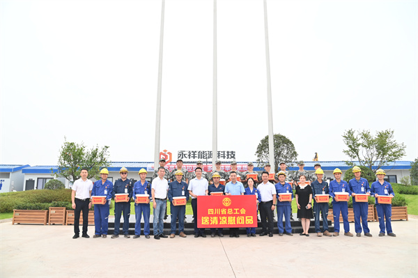 7月11日,四川省總工會黨組副書記、副主席周鍵率領省總工會領導班子成員頂著烈日到永祥能源科技項目為一線職工送去清涼物資和親切關懷。
