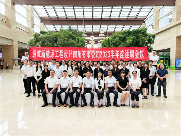 為系統(tǒng)總結(jié)設(shè)計(jì)公司上半年經(jīng)營(yíng)情況,全面理清下半年工作思路和目標(biāo),6月20日,通威新能源工程設(shè)計(jì)四川有限公司2023半年度述職會(huì)議在眉山成功舉辦。通威新能源常務(wù)副總經(jīng)理吳小平、總經(jīng)理助理何一弘、工程部總監(jiān)錢華政、綜合部部長(zhǎng)唐霖出席會(huì)議。