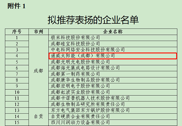 通威太陽能榮列四川省“科技創新表現突出企業”名單
