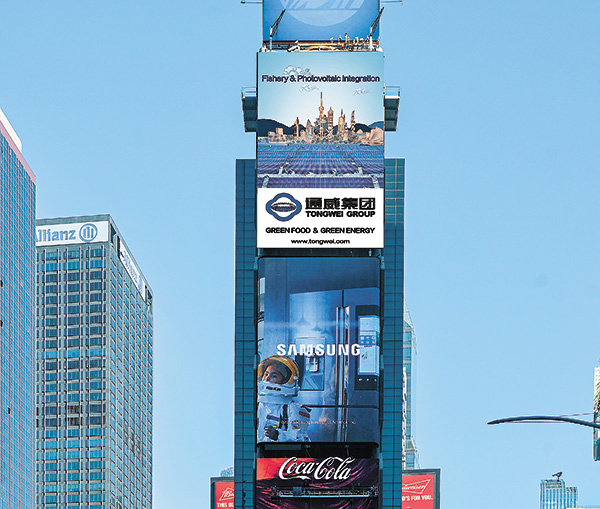 通威全球首創(chuàng)的“漁光一體”模式亮相紐約時(shí)代廣場(chǎng)