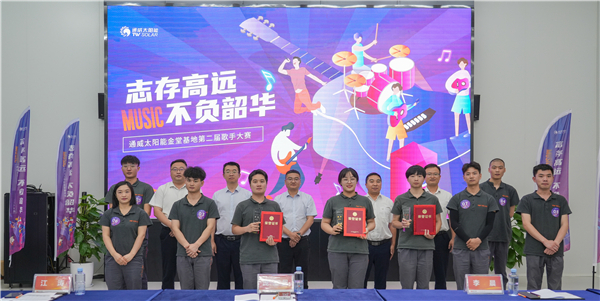 為豐富職工文體生活,激發職工工作活力,營造團結友愛的文化氛圍,6月2日,通威太陽能紅色聚能家第二屆歌手大賽決賽暨頒獎儀式圓滿落幕,通威太陽能總經理助理陳君,通合新能源總經理助理羅曉云、郭寬新,通威太陽能金堂基地總經理助理龐三鳳、彭山基地及安徽公司總經理助理顧峰、眉山基地總經理助理姚騫出席活動并頒獎。