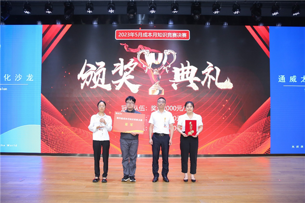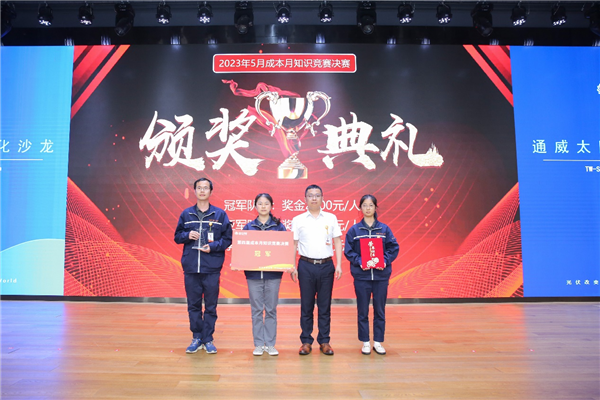 在本屆成本月競賽中,各基地有力組織,來自廠部的選手組合成隊(duì)在基地完成激勵的初賽最終決出基地冠軍代表隊(duì)參與本次知識競賽決賽。決賽現(xiàn)場,各支隊(duì)伍圍繞“開源節(jié)流促發(fā)展,挖潛增效創(chuàng)輝煌”的主題,通過計(jì)時搶答展開激烈角逐。各支隊(duì)伍全神貫注投入其中,認(rèn)真聽題,踴躍作答,展現(xiàn)了積極向上的通威精神與風(fēng)采。最終,經(jīng)過三輪激烈角逐,彭山基地代表隊(duì)勇奪冠軍、眉山基地代表隊(duì)榮獲亞軍、通合項(xiàng)目代表隊(duì)獲季軍。