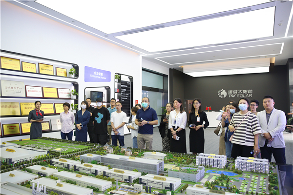 交流團一行參觀通威太陽能雙流基地智能制造展廳