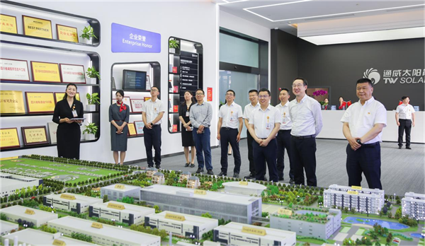 5月16日,成都市中級人民法院黨組書記、院長楊誠,雙流區(qū)區(qū)委書記歐昭,雙流區(qū)人民法院黨組書記、院長曾耀林一行蒞臨通威太陽能雙流基地參觀并就公司營商環(huán)境、企業(yè)司法服務(wù)需求進(jìn)行調(diào)研,通威太陽能總經(jīng)理周華、副總經(jīng)理宋梟、總經(jīng)理助理陳君及相關(guān)部門負(fù)責(zé)人熱情接待。