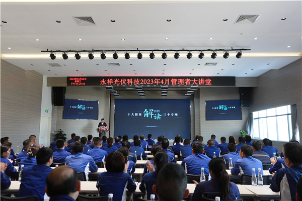 4月26日,光伏科技成功開展4月管理者大講堂。永祥光伏科技總經理袁中華、副總經理張軍、總經理助理趙軍,各部門負責人、副工段長及以上管理人員參加。此次課程特邀永祥股份高級講師盛志雄老師進行講解。