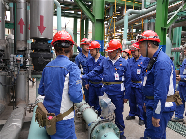 本次檢查分成六個小組,各帶隊領導帶領各檢查小組成員分赴各自負責的片區開展檢查,詳細檢查了裝置生產運行情況、檢維修作業安全措施落實情況,對各區域消防安全設施、環保設施以及公用工程進行排查,對發現的問題及時記錄,按照“四定原則”進行跟蹤整改。
