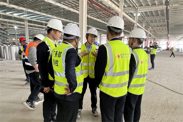 通威股份總裁助理、通威太陽能(合肥)有限公司總經(jīng)理蕭圣義帶隊檢查車間生產現(xiàn)場