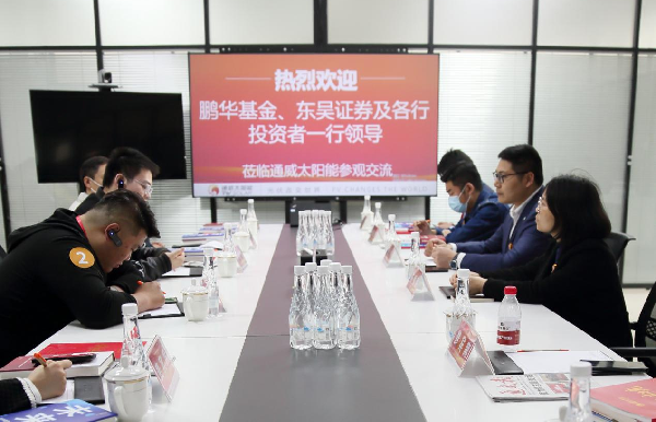 近日,東吳證券、鵬華基金一行蒞臨通威太陽能安徽公司考察交流,通威太陽能安徽公司總經理助理顧峰熱情接待并座談。