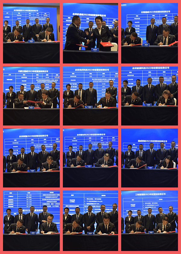 會議在催人奮進的《通威之歌》中拉開帷幕。安全分享和安全宣誓之后,永祥股份財務總監助理劉遐益作2023年度經營預算分析匯報,隨后,各子公司、永祥股份本部各部門作2023年度工作思路和行動計劃匯報。