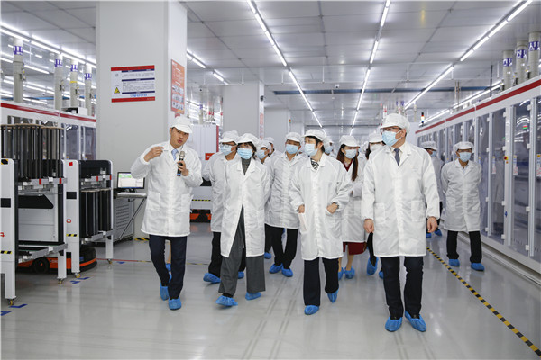 調研團一行參觀通威太陽能雙流基地智能制造展廳