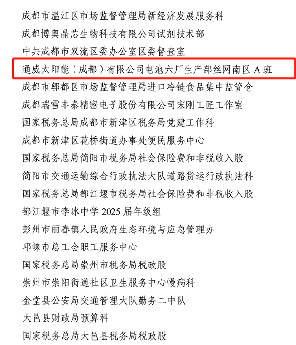 通威太陽能雙流基地班組榮獲2022年成都市工人先鋒號