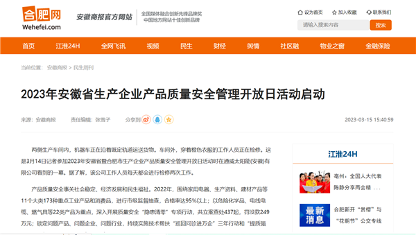 報道中指出,通威太陽能安徽公司作為產品質量安全管理模范企業,在本次開放日活動中積極分享企業產品質量控制和產品質量提升的經驗和做法,積極助推全省生產企業落實產品質量安全主體責任,助力產品質量提檔升級,增強產業質量競爭力及消費信心。在參觀過程中,參觀代表們詳細了解企業發展歷程、質量管理實踐及光伏新能源產品質量知識,直觀地感受到通威太陽能精細的質量管理和追求卓越品質,高質量發展的行動,并就如何提升產品質量、改進服務水平進行了座談交流。