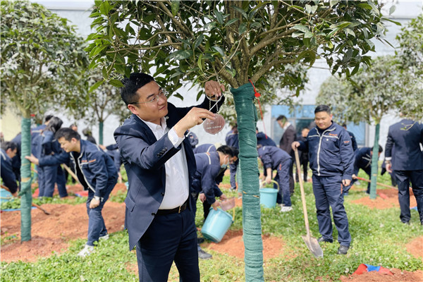 3月10日,金堂基地組織開展植樹活動,龐總帶領各部門相關負責人及員工代表參與植樹活動。活動現場,大家干勁十足,過程井然有序,完成樹木扶正、回填、澆水、夯實土層的工作,最后,龐總帶頭為樹掛牌。通過本次活動,不僅美化了園區(qū)環(huán)境,也提升了大家愛護生態(tài)的環(huán)保意識,意義非凡。