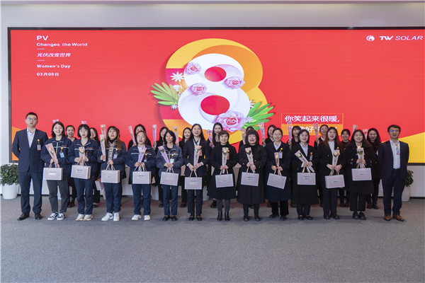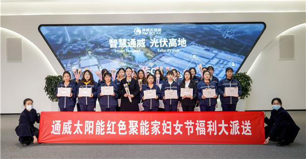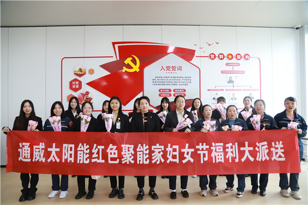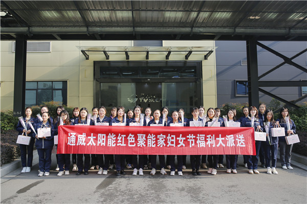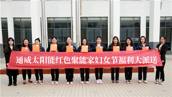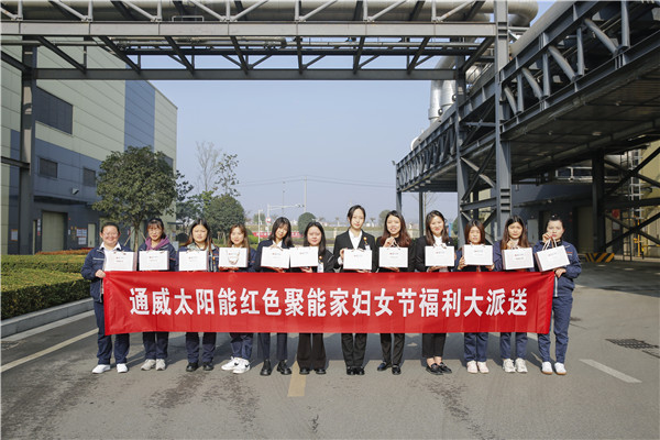 正值”三八“國(guó)際勞動(dòng)?jì)D女節(jié)來(lái)臨之際,為向辛勤付出的一線女性職工們表示感謝與慰問(wèn),提高女職工工作積極性,3月8號(hào),通威太陽(yáng)能安徽公司、雙流基地、眉山基地、金堂基地、通合項(xiàng)目及彭山基地組織開(kāi)展“三八婦女節(jié)”福利大派送活動(dòng),向身邊的每一個(gè)“她”致以深深敬意。通合新能源總經(jīng)理助理羅曉云、通威太陽(yáng)能眉山基地總經(jīng)理助理姚騫及各基地工會(huì)主席出席活動(dòng)。
