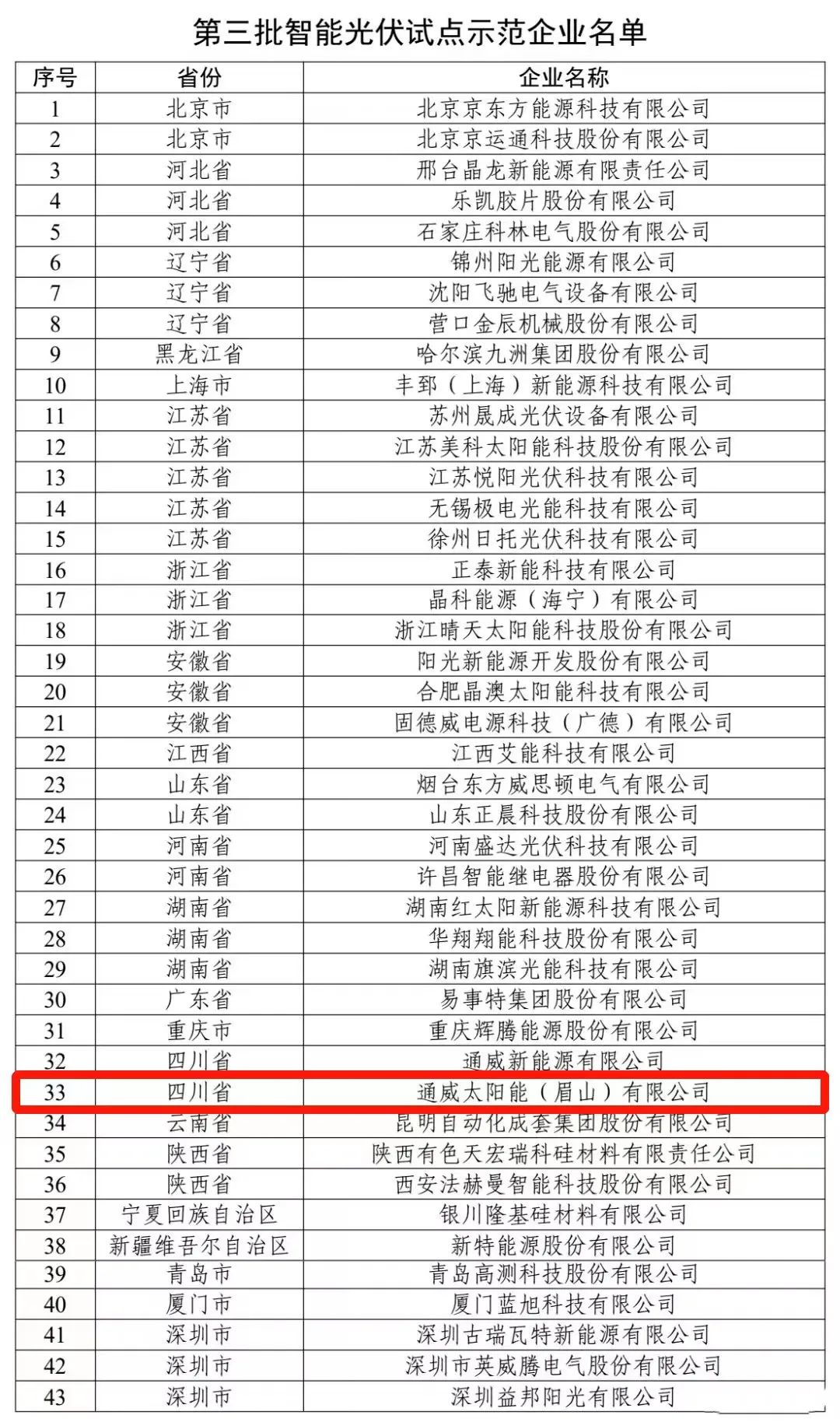2月23日,工業和信息化部官網公告了第三批43家智能光伏試點示范企業名單。作為全球光伏行業智能制造樣板和示范企業,通威太陽能(眉山)有限公司榮列該名單。