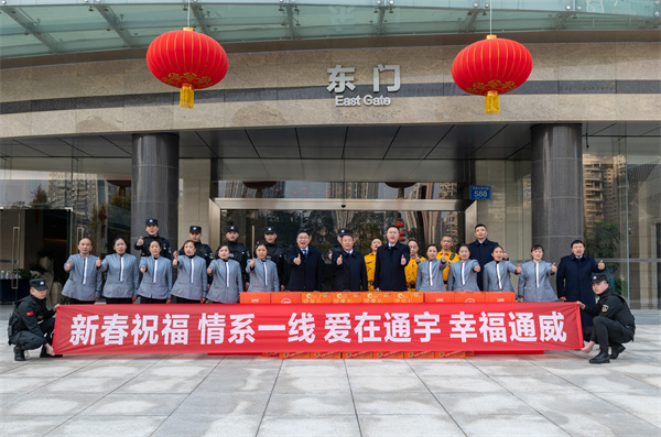 大年初一,通威集團副總裁黃其剛率通宇物業總經辦團隊來到通威國際中心,親切慰問節日期間堅守崗位的秩序部、環境部、工程部等三十余名一線員工。黃總特別轉達了劉漢元主席對大家的暖心問候,并發放了新春禮包,向堅守崗位的員工致以新春祝福和節日問候。期間,黃總查看了通威國際中心值守情況,仔細詢問了值守人員的崗位工作、食宿安排等情況,對大家井然有序地推進值班工作給予了充分肯定,感謝大家的辛勤付出,并鼓勵大家值守期間,加強安全排查和設施維護,確保平安過節。