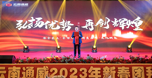 1月13日,云南通威順利舉行“弘揚優勢,再創輝煌”2023年新春團拜會,邀請到保山市人民政府副秘書長王迪等各職能部門領導列席,云南通威全員參加。