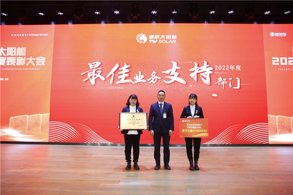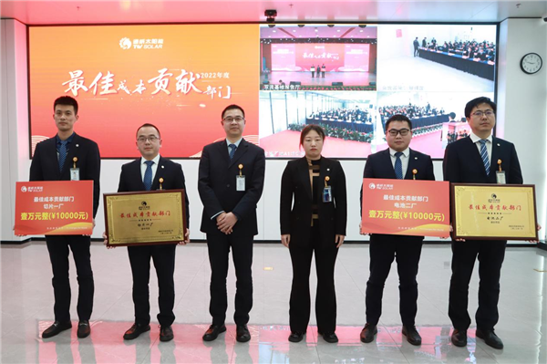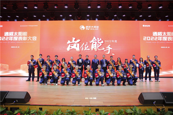 2022年評優(yōu)共設(shè)“崗位標(biāo)兵”“崗位能手”“崗位之星”“宣傳之星”“安全標(biāo)兵”“未來之星”6大個人獎項及“最佳成本貢獻(xiàn)部門”“安全生產(chǎn)先進(jìn)部門”“人才培養(yǎng)貢獻(xiàn)部門”“企業(yè)文化踐行模范部門”“最佳業(yè)務(wù)支持部門”及“年度最佳五型班組”6大優(yōu)秀團(tuán)隊獎項,共有216人、27個部門被評為優(yōu)秀員工、優(yōu)秀團(tuán)隊。表彰大會對優(yōu)秀員工、優(yōu)秀團(tuán)隊進(jìn)行一一風(fēng)采展示并上臺領(lǐng)獎。獲獎個人及團(tuán)隊代表先后發(fā)言,感謝公司的認(rèn)可和鼓勵,同時對于未來的工作充滿干勁,表示要以敢戰(zhàn)、能戰(zhàn)、善戰(zhàn)的奮斗者精神繼續(xù)勇往直前,為光伏事業(yè)的發(fā)展貢獻(xiàn)更多力量。