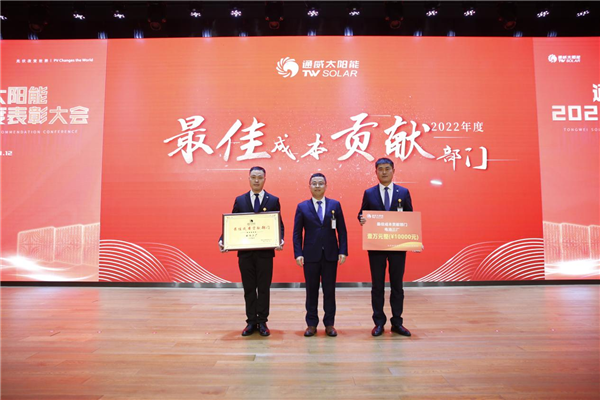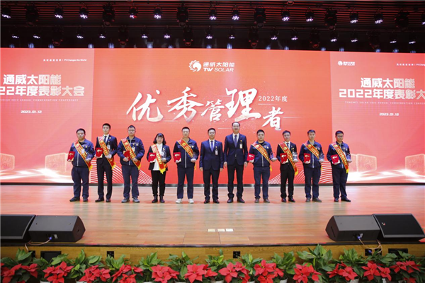 為樹立爭先創(chuàng)優(yōu)的企業(yè)文化,表彰先進(jìn)、樹立榜樣,1月12日,通威太陽能2022年度表彰大會隆重舉行。通威太陽能合肥、雙流、眉山、金堂基地及通合項目優(yōu)秀員工及優(yōu)秀團(tuán)隊代表、各部門員工代表現(xiàn)場及視頻參會,通威太陽能總經(jīng)理周華、副總經(jīng)理宋梟、總經(jīng)理助理陳君及各基地負(fù)責(zé)人出席活動并為優(yōu)秀員工、優(yōu)秀部門頒發(fā)獎項。