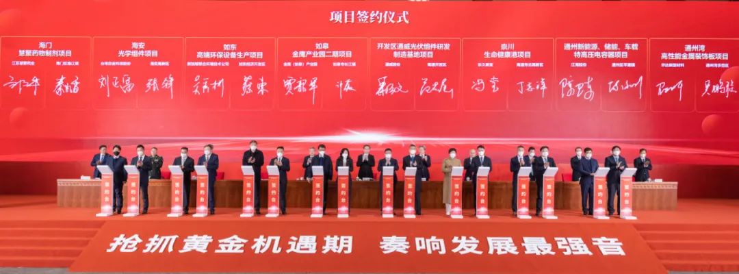 近日,南通市舉行持續推進“招商引資突破年”動員大會暨重大項目簽約儀式。南通市委書記王暉出席會議并講話。當天的簽約儀式上,產業類、總部型、科創類等48個重大項目集中簽約。通威股份總裁助理、通威太陽能(合肥)有限公司總經理蕭圣義作為簽約企業代表受邀出席,并與南通市經濟技術開發區正式簽署《高效光伏組件制造基地項目投資協議書》。