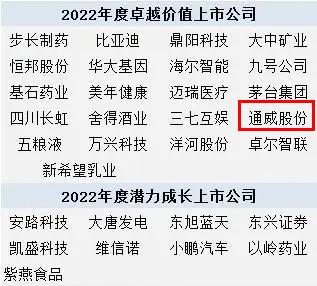 通威榮獲“2022年度卓越價值上市公司”等多項殊榮