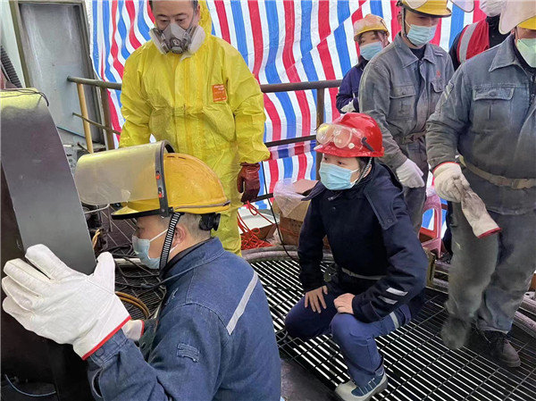 12月13日,永祥多晶硅總經(jīng)理劉逸楓深入氫化爐現(xiàn)場,仔細查看并了解檢修進展情況,查問題、提措施,對工段安全檢修、外協(xié)隊伍管理及檢修進度提出要求。