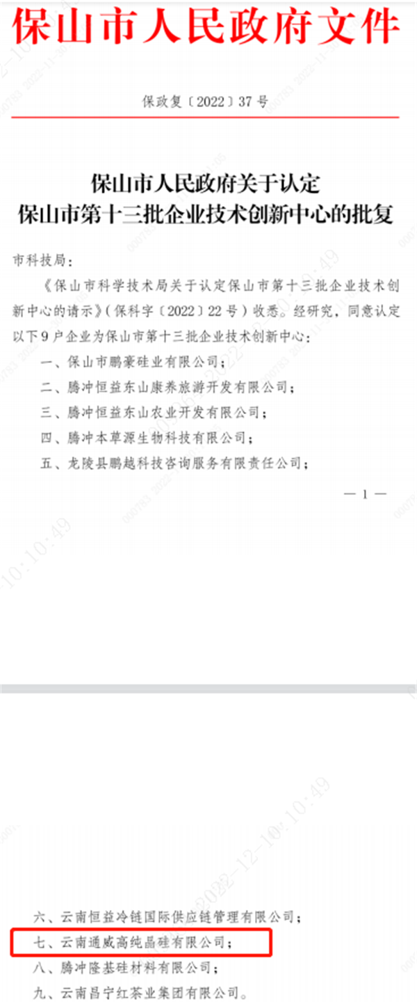 近日,保山市人民政府正式公布了第十三批“企業技術創新中心”及第十一批“技術創新人才”評定結果。云南通威榮獲“保山市企業技術創新中心”稱號,副總工程師彭中獲評“保山市技術創新人才”。