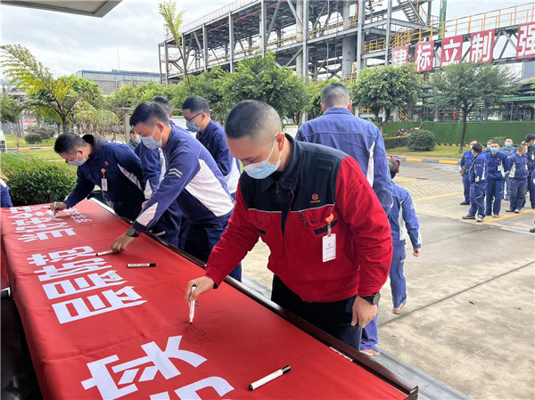 活動現場,牟總對活動方案進行解讀,將活動的安排及相關要求進行講解。本次活動以“求真務實、層層落實、當好安全守護人”為主題,進一步強化全員安全意識,提高員工安全操作技能,夯實“全面安全管理”基礎,提升公司安全生產管理水平。隨后,劉總帶領大家在“求真務實、層層落實、當好安全守護人”主題橫幅上莊嚴簽名。