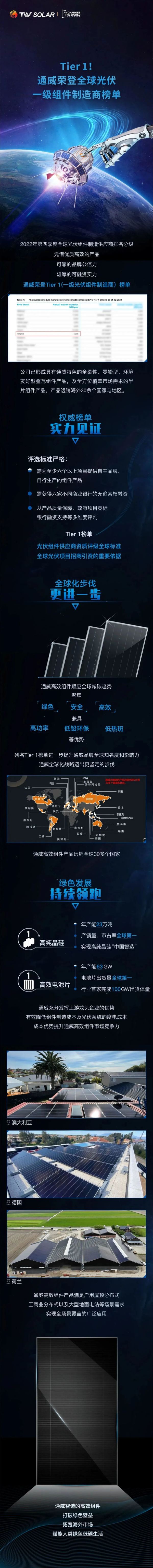 全球權(quán)威認(rèn)證!通威高效組件列名Tier 1榜單