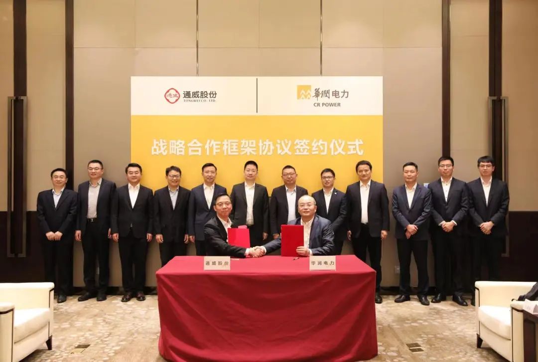 近日,通威股份與華潤電力戰(zhàn)略合作框架協(xié)議簽約儀式在深圳舉行。華潤電力黨委書記、總裁史寶峰,通威集團(tuán)黨委書記,通威股份董事長、CEO謝毅就深化雙方合作進(jìn)行交流,雙方主要負(fù)責(zé)人參與簽約儀式并共同見證。
