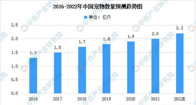 2016-2022年中國寵物數(shù)量預(yù)測趨勢圖