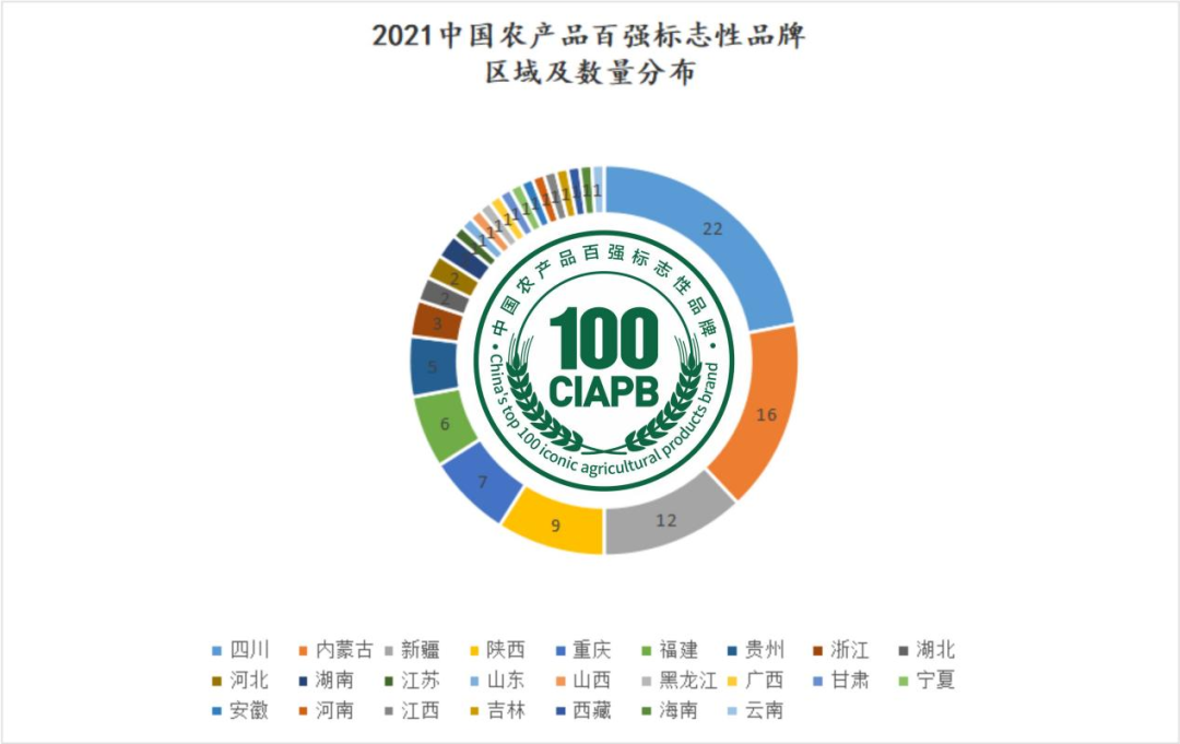 “2021中國農產品百強標志性品牌”區域及數量分布