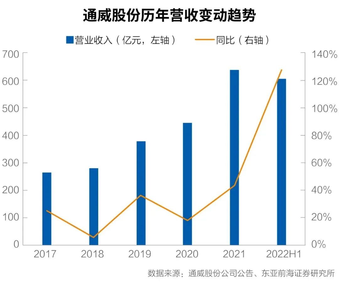 8月底,以58.27億元中標(biāo)華潤(rùn)電力第五批光伏組件集采;9月6日,以3.96億元中標(biāo)廣東省電力開(kāi)發(fā)有限公司2022年第三批光伏組件采購(gòu)(標(biāo)段一);9月20日,以1.97元/W的單價(jià)中標(biāo)國(guó)家電力投資集團(tuán)有限公司2022年度第四十四批集中招標(biāo),采購(gòu)容量為120MW……隨著中標(biāo)一連串大單,通威也大舉切入了組件。