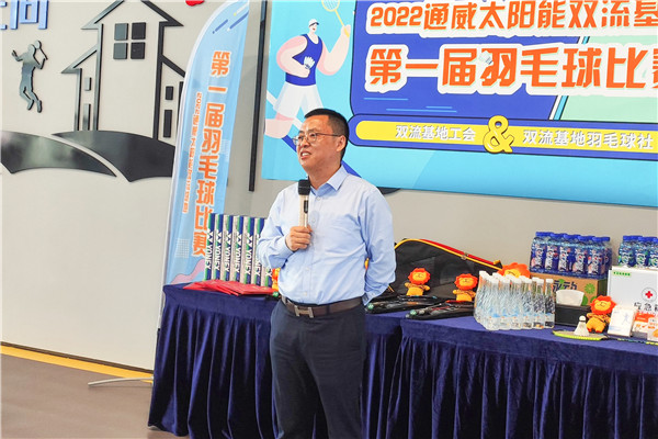 為進(jìn)一步豐富員工業(yè)余文化生活,搭建員工互動交流平臺,構(gòu)建健康和諧的工作氛圍,9月28日,通威太陽能雙流基地工會成功舉辦首屆職工羽毛球比賽開幕式,通威太陽能總經(jīng)理周華出席活動開球并致辭。