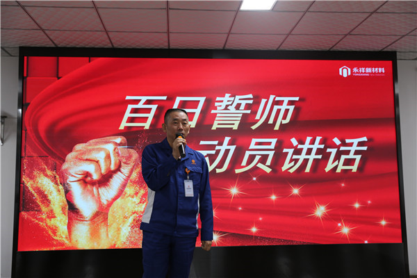 凝心聚力、使命必達,為激發全體永祥新材料人的拼搏精神,增強沖刺年度挑戰目標的決心,9月24日,永祥新材料成功召開2022年“奮戰100天,沖刺年度挑戰目標”誓師大會,公司常務副總經理廖萬能、副總工程師吳銘生、總經理助理李文彬、各部門助理工程師及以上人員、后勤職能部門全員參會。會議由人事行政部副經理先鴻敏主持。