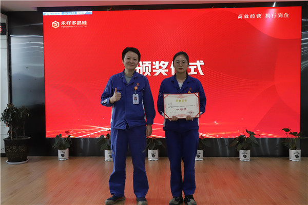 為積極響應永祥股份“推動質量變革創新,促進質量強企建設”質量月主題活動的號召,9月21日,永祥多晶硅舉行2022年“質量是生命”主題演講比賽,公司總經理劉逸楓、安全環保總監牟俊豐、副總工程師羅軒、總經理助理兼生產部經理王世棋及各部門經理、工段負責人出席并擔任評委,各工段員工代表參加。