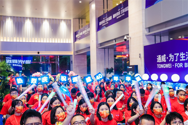 在四川通威,永祥股份樂山基地、包頭基地、保山基地,通威太陽能合肥基地、雙流基地、眉山基地、金堂基地等通威各產(chǎn)業(yè)基地,員工們通過視頻直播,共享視聽盛宴,為通威40年華誕送上誠摯祝福。