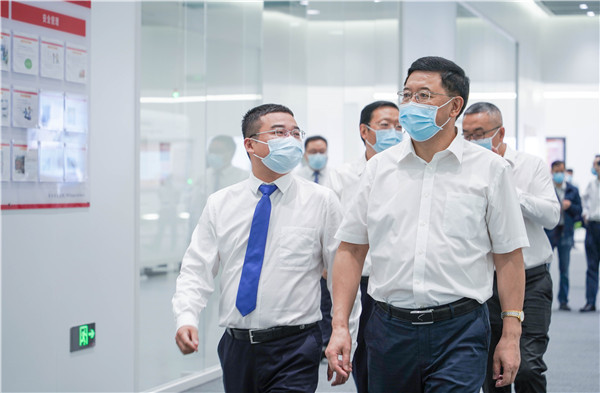 調(diào)研團(tuán)一行深入?yún)⒂^金堂基地智能制造車間
